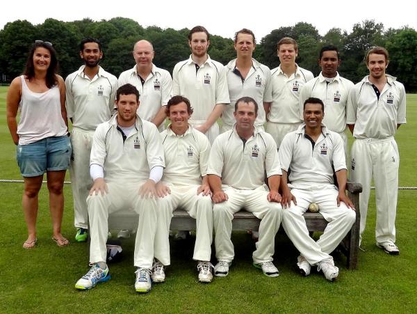 VRA1 2014 Staand vlnr: Pamela Mulder (manager), Vinoo Tewarie, Darrin Murray, Quirijn Gunning, Emile van den Burg, Matthijs Luten, Ashan Bamunusinghe (wk), Leon Turmaine. Zittend vlnr: Ben Cooper, Eric Swarczynski, Peter Borren (cpt), Sohail Bhatti. Victor Lubbers ontbreekt op deze foto.Nadat deze goede voorbereiding begonnen wij met batten, nadat Peter Borren de toss had gewonnen, gingen Erik en Ben openen. Na een snelle start verloren wij het wicket van Ben. Hij maakte 19 runs van niet zoveel ballen. Hierna kwam Emile in. Nadat hij deze week te horen had gekregen dat hij was geslaagd voor zijn HAVO-diploma, mocht hij zich nu gaan laten zien op het cricketveld. Na wat mooie schoten en 1x gedropt te zijn, ging ook Emile uit. Emile kon gelukkig toekijken hoe Erik aan de andere kant 2 vieren door de covers sloeg. Vinoo Tewarie ging in op nummer vier en wou zich, vooral na de laatste 2 weken, weer laten zien. Erik die er goed uitzag bleef haken op 37 runs.