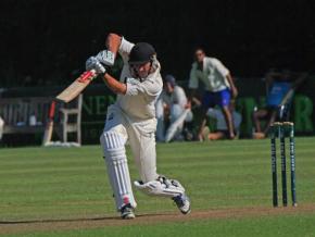 Heerlijk batten met Jeroen (56), die begrijpt dat je er zo af en toe eentje goed moet raken, zeker als je al die singles van mij moet compenseren. Jeroen had ook een zes over covers, ik zeg, shot of the season, echt zo mooi en hard en goed. We brachten het totaal naar 100 voor het eerste wicket, ook geholpen door wat extra's. Faarhi (15) kwam voor Jeroen, maar kon met LBW vertrekken, ik zeg na afloop nooit iets over de umpire. Dat was een beetje jammer, omdat er versneld moest worden. James kwam naar het midden. Gevaarlijk, dacht ik, fitte Kiwi, groot veld, die gaat 'the running game spelen'. Zal ik hem dan maar meteen uitrunnen? Eerst maar eens een voorzichtige poging door een iets te late 'no'. James keek me eens vragend aan, dacht na,...got the message. In plaats van de gaten te zoeken zorgde James ervoor dat het echt heel duidelijk een eentje was en probeerde zonder succes de andere ballen eruit te leggen.