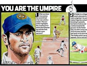 De Engelse krant The Guardian brengt al jaren een hele aardige strip in het sportkatern, een strip die net als z'n voetbaltegenhanger (sinds 1957) 'You're the Ref!' in Engeland cultstatus heeft verworven. Aan de hand van actuele gebeurtenissen in de betreffende sport worden de lezer lastige cases voorgelegd, die de nodige regelkennis vergen. De prachtige illustraties zijn van de hand van Paul Trevillion (74). *Klik op de afbeelding om te vergroten. Oplossingen worden gegeven door zijn vaste sidekick John Holder. Hier weer een nieuwe strip met de antwoorden.