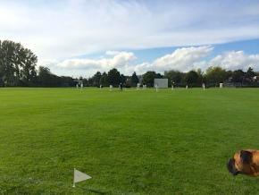 Ongeveer twee uur na aankomst konden we dan toch echt het veld op, met kleine tussenpauzes van regenval krijgen we het toch voor elkaar om voor time 24 overs te spelen.