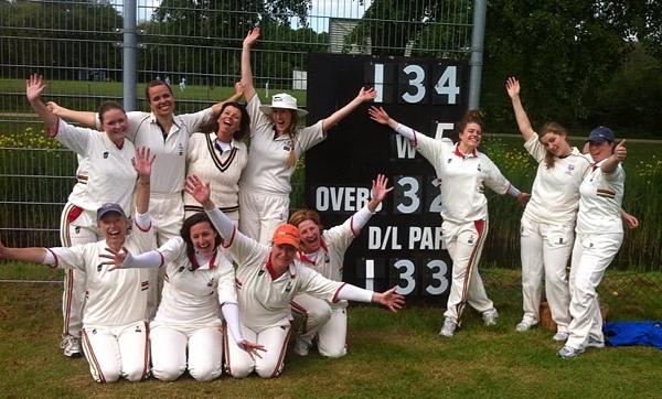 Tweede innings zouden Git ( 24) en Saskia (32) voor een solid start van de wedstrijd zorgen, mooi geduldig batten en harde slagen. Na 66 runs viel het eerste wicket en ging Jaqueline Pashley het veld in die met een 25 n.o. ons naar de overwinning batte. Mevrouw de voorzitster Dorien die al de hele ochtend van boundary naar boundary had gehuppeld was niet te stuiten qua energie mocht in op 4 en maakte een paar snelle runs. Icara, Anne en ik volgenden een paar rake klappen maar te ongeduldig om er lang in te blijven. Onze 'ik mag niet runnen van de dokter dus ik sla wel 4tjes' Sjoukje zou samen met Jaqueline ons naar de 134 brengen.