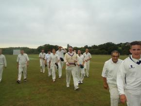Porchfield krijgt 36 overs om ons totaal te maken en ze gaan tamelijk soepeltjes op weg. Na 19 overs hebben 100 runs met 4 wickets down. Dus nog maar 69 om te maken in 17 overs, 4 per over. Maar zoals altijd, een wicket valt en de score vertraagt. Na de 29e over is het 143 voor 6 en opeens is 24 van 7 met de staart aan bat misschien wel verdedigbaar. Maar ja, de Engelsen weten als geen ander hoe je een innings kan timen en ze maken het toch nog simpel in 35.2 overs.