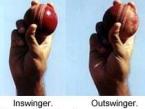 Hold the ball between the first and second finger with the seam vertical and thumb underneath.