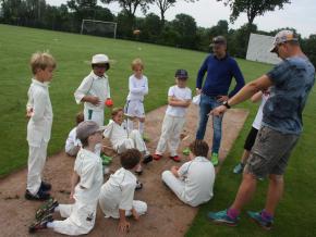 The trip to Utrecht was VRA U10's second away game of the season so it was an early start and we (almost) all made it in time, despite the road works in the immediate surrounding of the Kampong Cricket Club. What the venue lacks in atmosphere was more than made up for by the graciousness of our hosts and the game that would follow. There was a watery sun in the air and rain was threatening, but it remained dry throughout the match, only for the downpour to start some 45 minutes after it's conclusion. So the weather gods were sympathetic and as it would turn out, so were the cricket gods.