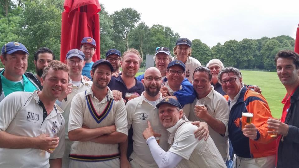 In woord: Simon varvaruc tegen Kampong, Huggy won met 3 wkts een run out en 80 not out. Supporting rollen door Joost Dekkers aan bat en Sebastiaan Capel met twee vangen.