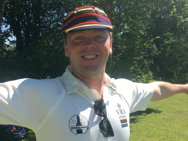 De keus is geïnspireerd door de cap die Harold Horsman nog steeds draagt, terwijl hij alle bowlers in de zami-competitie in de V voor vier en zes slaat. Gekleurde ringen (“hooped” voor de kennes) in de traditionele VRA-kleuren rood-zwart-geel-blauw met een comfortabele fit voor alle hoofden. Na een uitgebreide zoektocht onder cap-makers, is een bedrijfje in Hampshire geselecteerd om de replica’s te maken. En het resultaat liegt er niet om, zo zag een ieder langs de lijn en op het balkon afgelopen zaterdag.
