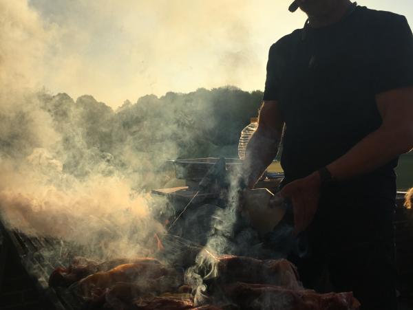 De dag sluiten we af met pils en een heerlijk verzorgde BBQ