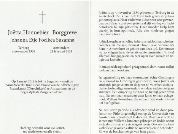 In Memoriam Joëtta Honnebier-Borggreve 1934 - 2018
