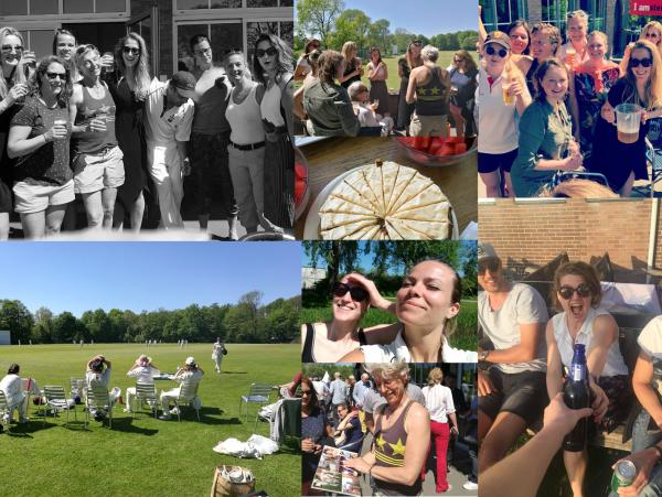 Let’s just start by we ended up with 119 runs for 4, coming only 5 runs short in the last over. It was super exciting. Maartje hit a beautiful 48 runs, supported by Katie and Nathalie. After my muscleaches I calculated I ran around 109 runs, but only hit 30 of them hahaha. That’s what batting with Maartje and Sjoukje is like. Anyways, Maartje and Katie were not out and batted brilliantly, we just came a bit short in the end. Sadly we didn’t win, but we did have a great day and as the Zami’s and 1st team were also playing home we made it into a sunny afternoon with drinks and bbq! We also presented Saskia with a little book of amazing awesome memories of her years at VRA, filled with tours, matchdays, trainings, drinks, long talks, coffee’s, dancing and smiles.