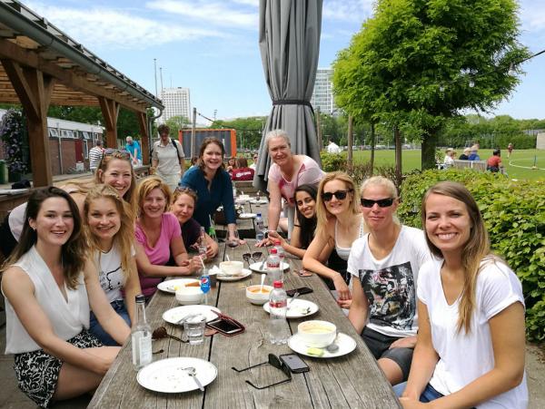 Germany got to 110 runs for 4. Time to start our batting innings. Maartje opened with Sjouk and they both hit it nicely, but quickly Anne and Sally went in. Sally went on to make a banging 46 runs with the support of Anne and Meike who both looked steady and in good form, but then Nathalie, Kanishka, Katie and Lot came in. We tried hard, but sadly we didn’t get to the target. It was a good game. After the game we started planning a mid or end of season weekend to play Germany! Next week we play Rood en Wit, Haarlem bound in a heatwave. Bring it :) Also a big hands for mama Hennis for baking for us this game and the other homegame. Her bakingskills lift our spirits and fill our tummies!