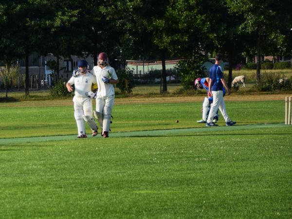 VRA’s openers, Dan en Erik maakten daarna een solide indruk. Dan nam het voortouw en scoorde snel terwijl Erik er nog even in moest komen. Maar alras stelde hij alles in het werk om Dan in te halen en hij slaagde daar bijna in. Lang leek het erop dat VRA het ACC-totaal voor nul zou passeren maar een dubieuze LBW-beslissing zorgde ervoor dat Dan vlak voor de finish met 52 runs achter zijn naam kon vertrekken. Gelukkig haalde Erik daarna nog net zijn meer dan verdiende halve century. Dat ACC’s 112 runs werd gepasseerd door middel van een wide was een beetje een anti-climax, maar veel deed het aan de VRA-pret niet af. Onze jongens zijn bezig met een uitstekende reeks die hopelijk volgende zondag tegen Sparta een voortzetting krijgt.
