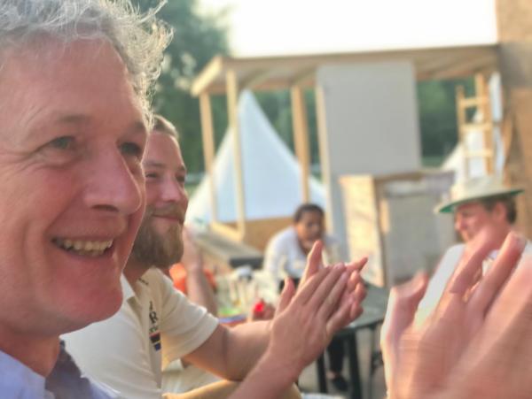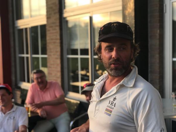 En ja hoor, voor de vierde keer dit jaar een weinig overtuigende opening. 30/3 in 12 overs en we kunnen weer repareren. Nou was dat toch wel lachen Paul, want kom ik daar in het midden gewoon Bart Schotte tegen! Class of 1984 re-united. Dik Abed keek vast even met je mee vanuit jullie Hemelse pavillion Paul. Het plan was simpel. Sowieso een run per bal en verder gewoon de slechte bal wegslaan. Alleen.....wat is een slechte bal in zami cricket? We speelden tegen iemand die de bal nóg hoger opgooide dan jij Paul! En natuurlijk gingen we lekker korte runs pakken, want dat hebben we geleerd. Nou ja, ik lekker en Bart wat minder lekker. Zag ie er na 5 overtjes uit alsof ie 15 rondes gebokst had! Paars was ie! En dan vooral de singles blijven pakken. En Theo Lindemann vanaf de kant maar blijven gillen dat ik dat niet moest doen met Bart! Vriendelijke vent trouwens die Theo. Puffend, piepend en steunend gingen Bart en ik op 100 uit (dat hoort zo in de Zami’s) en konden we relaxed kijken hoe die Willem wéér een beslissende factor was in dit team. Met een wijntje erbij en gezellig met de Pulver-crew wat beppen en hairstyle challenges houden. Uiteindelijk werd het 158/5 en maakte HCC de wedstrijd in stijl af met een wide!