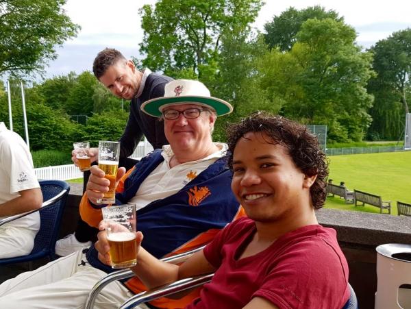 Honderd om te winnen in twintig overs, lijkt makkelijk, maar kan net zo goed de nodige problemen opleveren. Maar in de inmiddels verschenen zonneschijn maakten Harold en vooral onze nieuwe Britse aankoop Andy er korte metten mee. Andy debuteerde vorige week met vijf wickets, deze week scoorde hij een vijftig, handig erbij te hebben. Prettige vent ook nog eens, trakteerde op jugs voor beide mijlpalen, we kijken uit naar de rest van het seizoen!