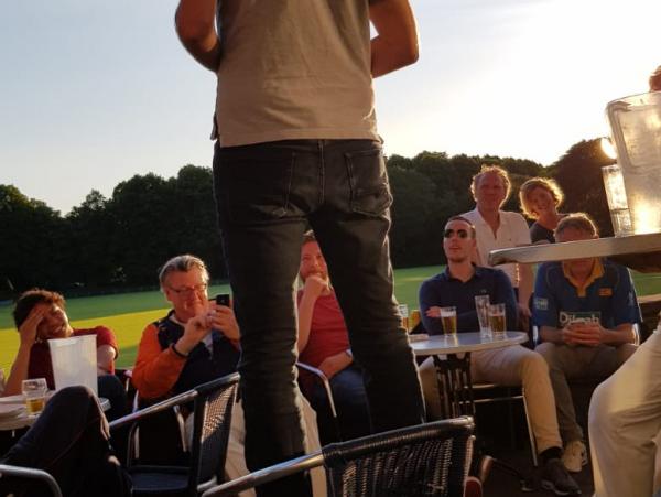 By this point the 1’s were well on their way to victory. Bob Prenen picked up the wicket of Ernst van Rapphorst (1) to finish with excellent figures of 1-19 from 6 overs. Jelger Gustafsson (3 n.o.) came in to support man of the match van Mierlo who was now in full flow and it was he that finished the game in style with a superb 6 over square leg from a loopy Capel full toss to end 47 not out and secure the victory for the 1’s with 4 overs to spare.