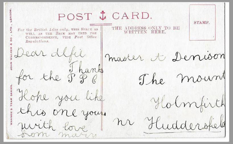klik op de foto voor beeldvullende weergaveIn een charmant rond jongedames-handschrift schrijft Mary ruim 100 jaar geleden aan Alfie Denison: “…Dank je wel voor de ansicht (Picture Post Card). Ik hoop, dat jij deze mooi vindt.” Zou Master Alfred bij het bekijken van de voorzijde van de kaart een vergelijkbare ervaring hebben gehad als ondergetekende een flink aantal jaren geleden? Bij mijn ‘maiden entry’ in het vriendelijke dorp Kudelstaart doemde ter linkerzijde van de weg een bord op met de tekst ‘Rozenkwekerij J.Tulp’. De gedachte aan een practical joke kwam kort bij mij op, maar werd even snel weer verworpen. Zulke grappen werden in deze contreien vast niet gemaakt. Hoewel, Kudelstaart. Ik bleef dus alert op eventuele verdere tegenovergestelde aptoniemen. ( aptoniem = naam, die wat zegt van een beroep, bijv. Schol - vishandelaar.) Tevergeefs.