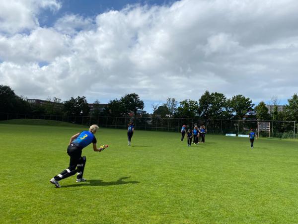 The sun came out, bowlers Nathalie and Sjoukja gave a kick start but the bowlers were competing to keep up with the wind speed. We got our first run out, it was a beautiful ball by Nathi and Paree went for it straight into fielders hands, it was a very good coordination between Lotte and Sally. Next followed by Lot and Gwen came in to bowling action, I took a beautiful slip catch from Gwen’s fast bowling where the opponents team lost their opening batsman. Splendid fielding was done by Lotte, took two magnificent catches effortlessly one in Lot’s over and another one in my over. Then comes the Sieger’s Sisters into the field. Both the sisters started building up partnership which was crucial for them and crucial for us to break the partnership. Nathi and Gwen came into attack, each of them claiming a wicket in the last overs which was something of a relief. I bowled the 29th over where nobody could stop Heather from hitting the boundaries and she contributed 78 runs to the team and at the end of the innings the final score was 171/9 in 30 overs.