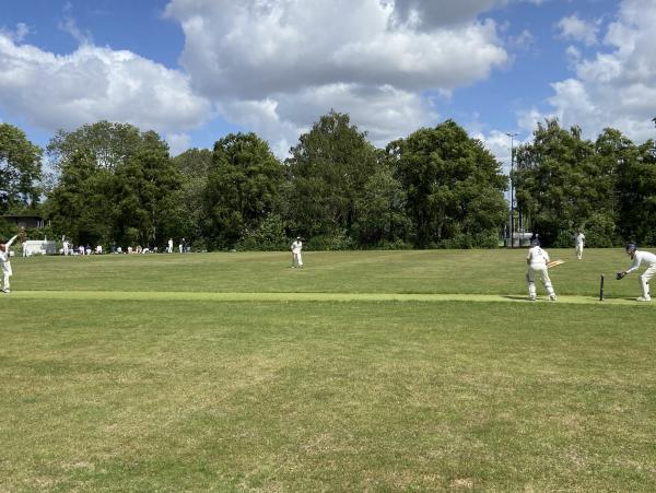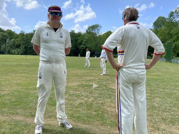 In de verte nemen we een hysterische bezweringsdans van de wicketkeeper ( in H-vorm), een aan de grond genagelde mid wicket, twee wickets en één batsman waar. Bij gebrek aan umpires en dientengevolge waarschijnlijk ook aan een lost ball-call gaat de batsman vooralsnog onverdroten door met runnen. Evenals de umpires, is zijn partner in geen velden of wegen te bekennen.
