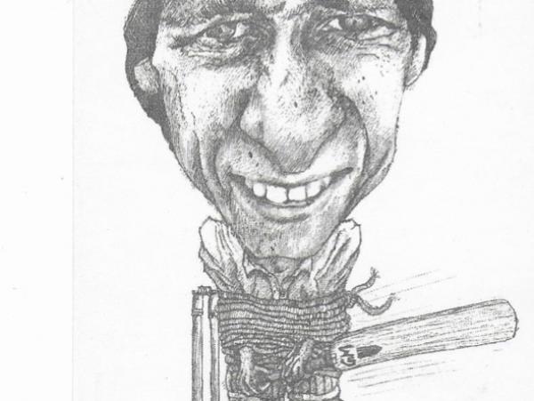 Randall was een nogal clowneske verschijning op de cricketvelden, die met zijn optreden iets weghad van Charley Chaplin. Een publiekslieveling, zeker bij de supporters van Nottinghamshire, de County waarvoor hij tussen 1971 en 1993 onafgebroken speelde. Hij scoorde bijna 30.000 runs voor Notts en werd er landskampioen in 1980, toen hij tevens één van de Wisden Cricketers of The Year was. Niet bij Nottinghamshire, maar in het Engelse Testteam was de aan- en afwezigheid van het genie op zijn schouders het meest manifest. Briljante innings en centuries (7) werden afgewisseld met moeizame, onproduktieve battingbeurten. Als Engeland dan ook nog eens verloor, werd Randall, die zich desondanks altijd loyaal bleef opstellen, door de keuzeheren meestal als dé zondebok aangewezen. En zo heeft de tekenaar Russell Fisher hem afgebeeld, als een hondstrouwe kracht, ‘ready to play’, maar aan handen en voeten gebonden. De ansichtkaart maakt trouwens deel uit van een speciale serie van zes sportieve helden uit de jaren ’80, waaronder Ilie Nastase en Mohammed Ali. Voorwaar een illuster gezelschap.