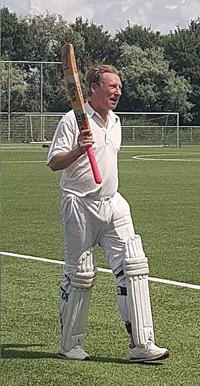 Jelger at no.3 was waiting patiently with his legguards on and the suggestion from Maarten was to try to reverse jinx it by taking his legguards off. Jelger took over after Maarten (52, 5x4, 1x6) and Thomas (66, 8x4, 1x6) departed and together with Freddy (19, 3x4) he kept the momentum going. One highlight was his full toss six over covers. Everybody tried to keep up the tempo and did not mind getting out with big heaves and across the line slogs for the greater cause of a big total. Jelger reached his climax at 69, 7x4, 3x6). A very appropriate ending on 248 for 5. Good score but you know the saying: the smaller they are, the harder they come.