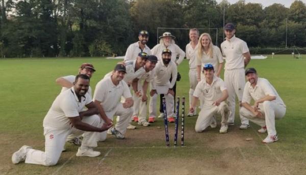 Met beide openers zo snel aan de kant weigert ACC de handdoek te werpen en batsmen #3 en #4 gaan optimistisch verder, waarbij #4 zo ver zijn crease uitloopt dat bowler Piotr zeer snel denkend met bal in hand van het reeds gebroken wicket één stump uit de grond trekt. De gevaarlijke Bart Sandberg gaat voor een Diamond Duck, ACC op 12/3 en in all sorts of trouble. Het wordt nu echt tijd voor plan B., de eervolle draw. Maar dan moet het onophoudelijk aanvallen van het wicket door spinners Martijn Besier en Pragam Rathore nog beginnen. Met de wijzers van de klok op 18:30 is er nog een uur te spelen en een minimum van 17 overs voor de VRA om de resterende vier wickets te nemen en net als vorig jaar met de volle buit aan de haal te gaan. Vooral Pragam geselt de lower order van ACC weer en pakt wickets 7, 8 en 9 (zie foto). Met de klok op 19:22 geeft umpire Jouk aan dat er nog drie overs gebowled mogen worden. Een upbeat Saranga Liyanage, z’n landgenoten winnen de Asia Cup, perst er nog één keer alles uit. Hij zal de laatse over bowlen… Dot – Dot – Wicket! VRA wint met three balls to spare… Extreme blijdschap bij VRA en bittere teleurstelling bij de bats(wo)men. Wat een wreed spel!Terug naar start. Realisten voorzagen een verregende test, optimisten zagen kansen en opportunisten droomden over de mooiste editie tot dusverre… het perfecte einde van misschien wel het mooiste cricket seizoen (West Indies, Pakistan en Engeland op bezoek) in Nederland ooit. Gebroederlijk wordt er nagepraat en gedronken, worden Jouk en Prasuk bedankt en Layla en haar staf in het zonnetje gezet. Zullen we volgend jaar dan toch echt een keer twee tests spelen, zeggen we tot besluit tegen elkaar. Eén aan het begin van het seizoen, één aan het einde van het seizoen. Aan animo geen gebrek onder deze opportunisten.