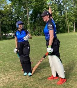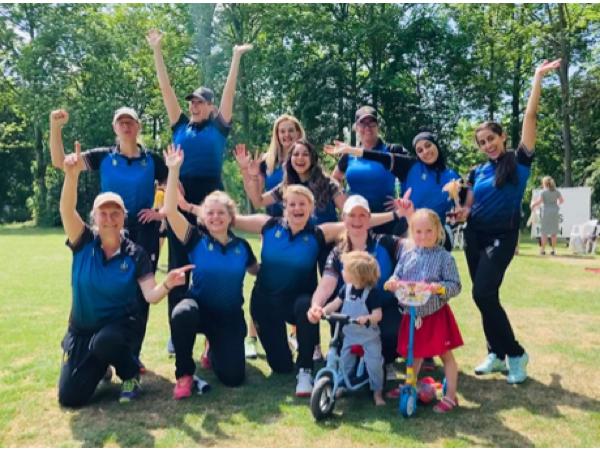 On 45-4 Captain Sally stepped in to steady the ship along with partner Ersha having a great day with the bat, hitting the ball further every game. As always Super Sal made the batting look easy racking up 60* with 8 4s and a 6 despite some excellent fielding by the opposition on the boundary (clearly incentivised by the thought of having to spend more time fishing for the ball..). In fact the only thing that challenged Sal while batting was trying to get Kanishka to feed her sweets through her helmet grill, at last we’ve found something for her to work on! Unfortunately no umpires in the ladies league this year so we took the approach of safety in numbers and had 4 of us on the field at once as stand in umpires for most of the afternoon enjoying the sunshine. Sal has set the team homework videos to watch to swot up on the LBW rules before next week. With some quick runs at the end from Sjouk we finished on 146. Between innings Fleur doing a wonderful job as always sorting out the scoring and keep everything in check, we would be lost without her. Nathi and Coco opened the bowling, with our first breakthrough from Nathi in the 3rd over. Off to a great start. Then Kanishka in sparkling form got 2 wickets in her first over, one a lovely catch by safe hands Maartje. Sjoukje back bowling off her proper run up this year and that did the trick picking up 2 in the 8th over, one a nice catch by keeper Manisha. Another wicket by Kanish with all looking good on 40-6 but we knew with their big hitters still in and to come plus the small boundary this wasn’t over yet. But after dangling Git in the stream for yet more ball retrieval Nathi got the big wicket we needed bowling Denise in the 15th over. Great fielding from all protecting the boundary to the end and finishing with a run out.