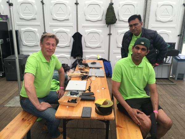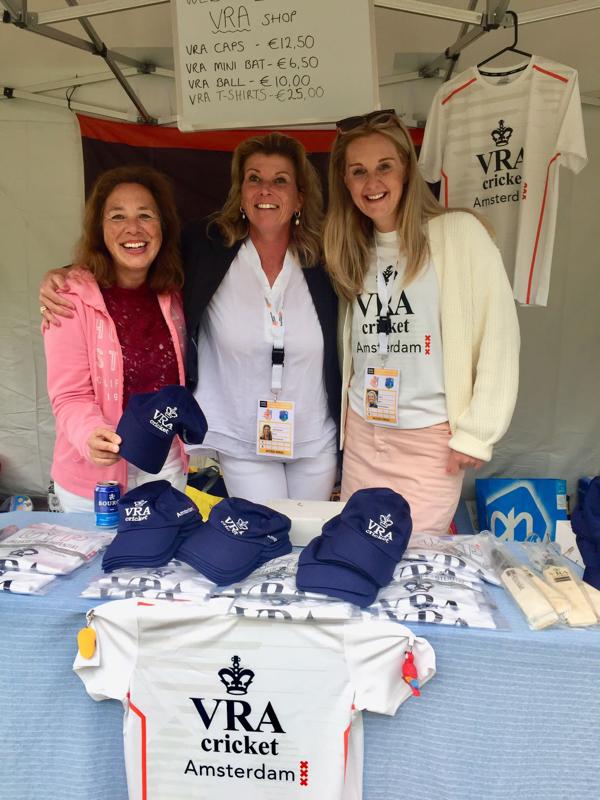Relaxen na geslaagde crowd control Het commandocentrum van Maarten Slagter Peter van Gulik hakt de Ultra Edge microfoons achter de stumps in de pitch VRA Merchandise is groot succes!T20 Excelsior Ladies - VRA Ladies; VRA wins with 48 runs