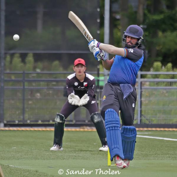 Na het traditionele Haagse bakkie, gingen we tossen. En wij konden gaan batten. We schoten uit de startblokken met onze nieuwe Belgische rekruut Abad en Maarten. Abad moest na een fantastische caught & bowled voor 26 runs het veld verlaten, wat ruimte maakte voor Amit om de goede start voort te zetten. Dat deed hij met verve, 40 uit 35 ballen. Helaas was HJ van Dapperen hem te slim af en werd Amit gestumpt. Slagter volgde daarna snel, want die was vervelend door zijn rug gegaan. Gelukkig kon hij wel de wedstrijd uitspelen.